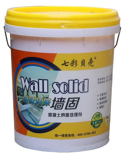 墻固即聚合物混凝土界面處理劑,外觀為乳白色膠液。具有滲透性,能浸潤墻面基層,使基層密實,提高光滑基層界面附著力,粘結度高,保證水泥拉毛牢固可靠,提高膩子或灰漿與墻面基層的粘結強度,有效防止找平層空鼓、開裂,提高施工質量,加快施工進度,是裝飾裝修工程中的配套材料。適用于混凝土、加氣混凝土和磚混墻面批刮膩子或抹灰前基層的界面處理,適用于在墻面基層進行人工“造毛”,即造水泥拉毛。